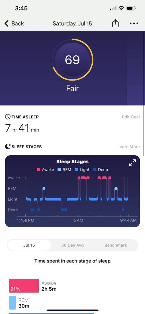 I did use 2 different sleep trackers (I had a Fitbit originally, but recently switched to an Apple Watch)…but you can still see the metrics of how the quality of my sleep shifted!